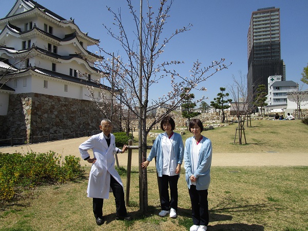 当院の川向に、尼崎城天守が約145年ぶりに再建されました。その記念に、スタッフ一同から寄付を募り「尼崎城桜植樹」に参加してきました。これから春になると尼崎城址公 園内に咲く桜をスタッフ一同楽しみにしています。