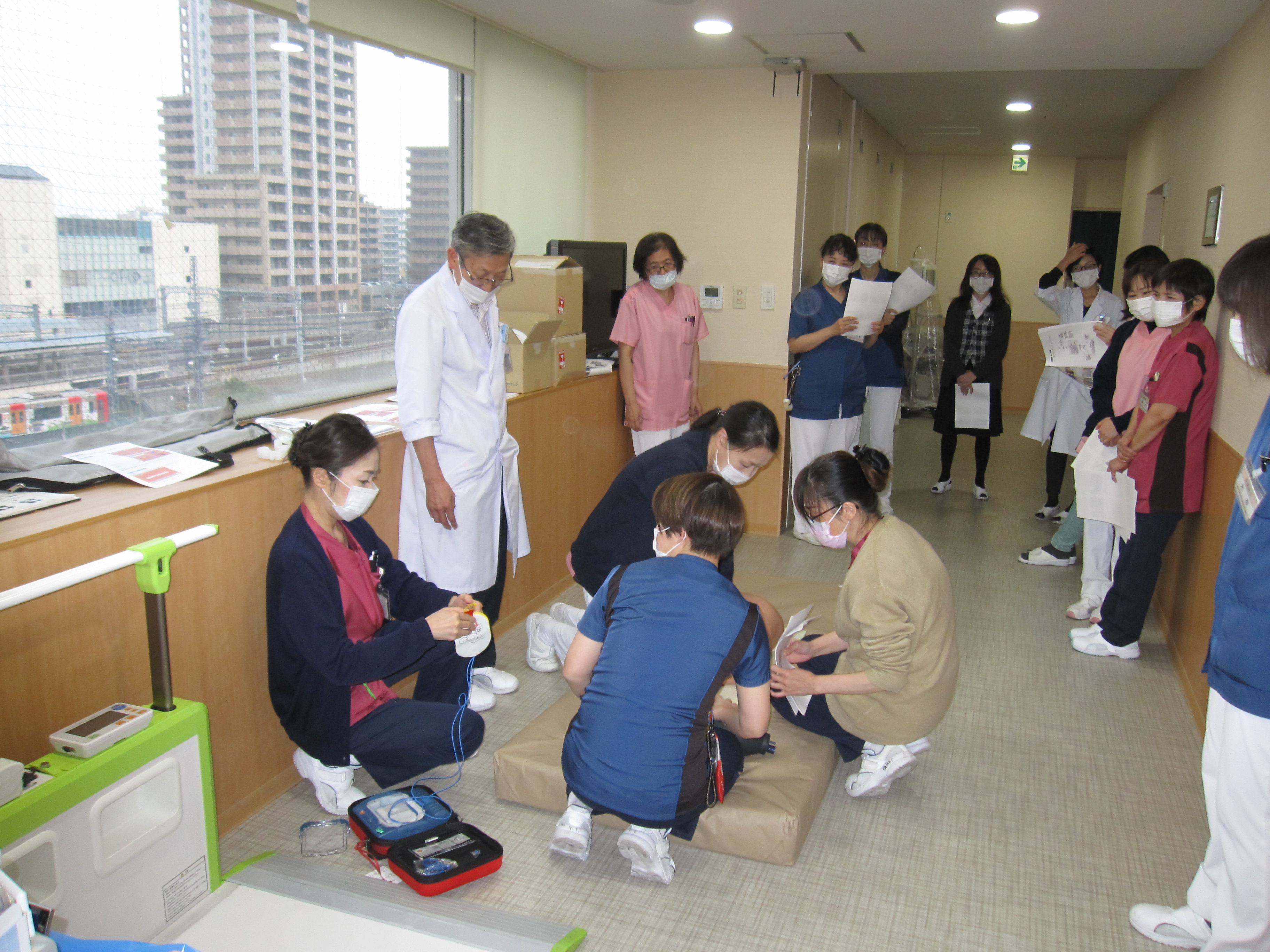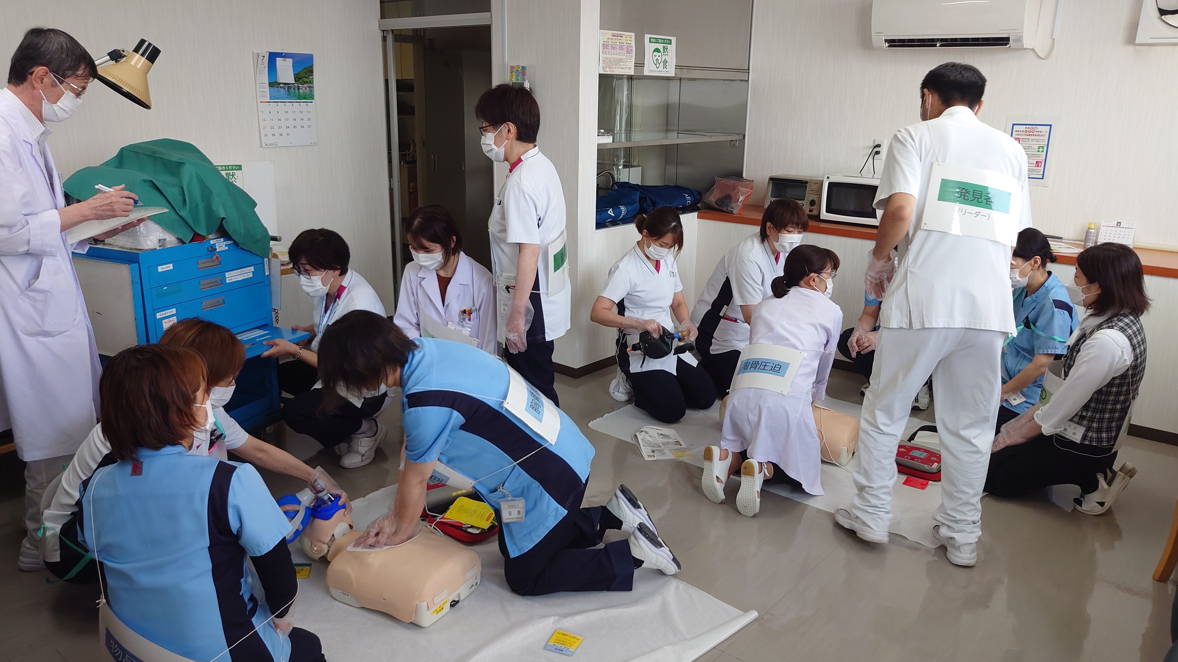 院内学習会「心肺停止時の初期対応」を全職員を対象に実技・学習会を行いました。