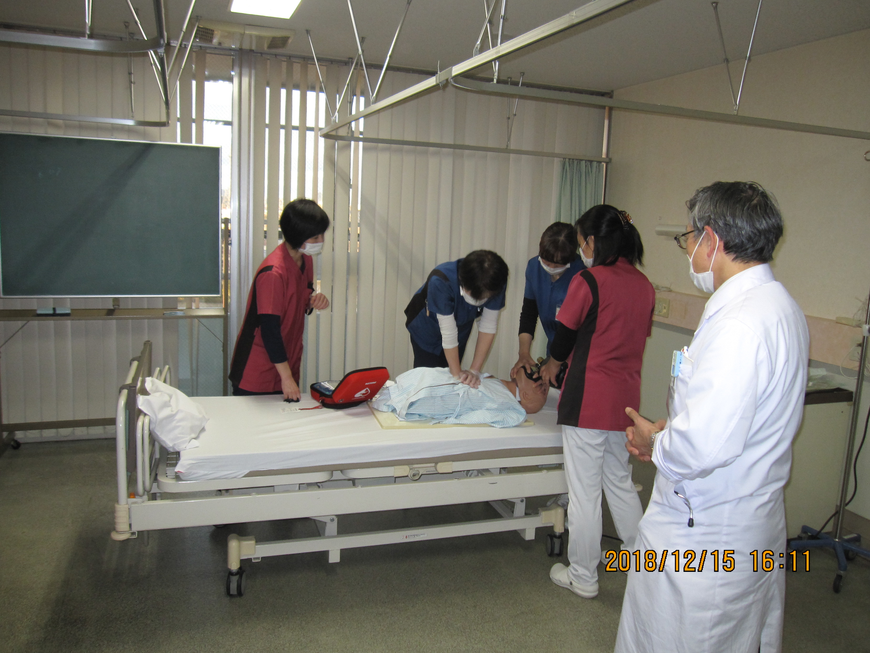 12月11日、20日の2日間、院内学習会「心肺停止時の初期対応」を全職員を対象に実技・学習会を行いました。講師は、JMECC,ICLSインストラクターの小野孝彦院長