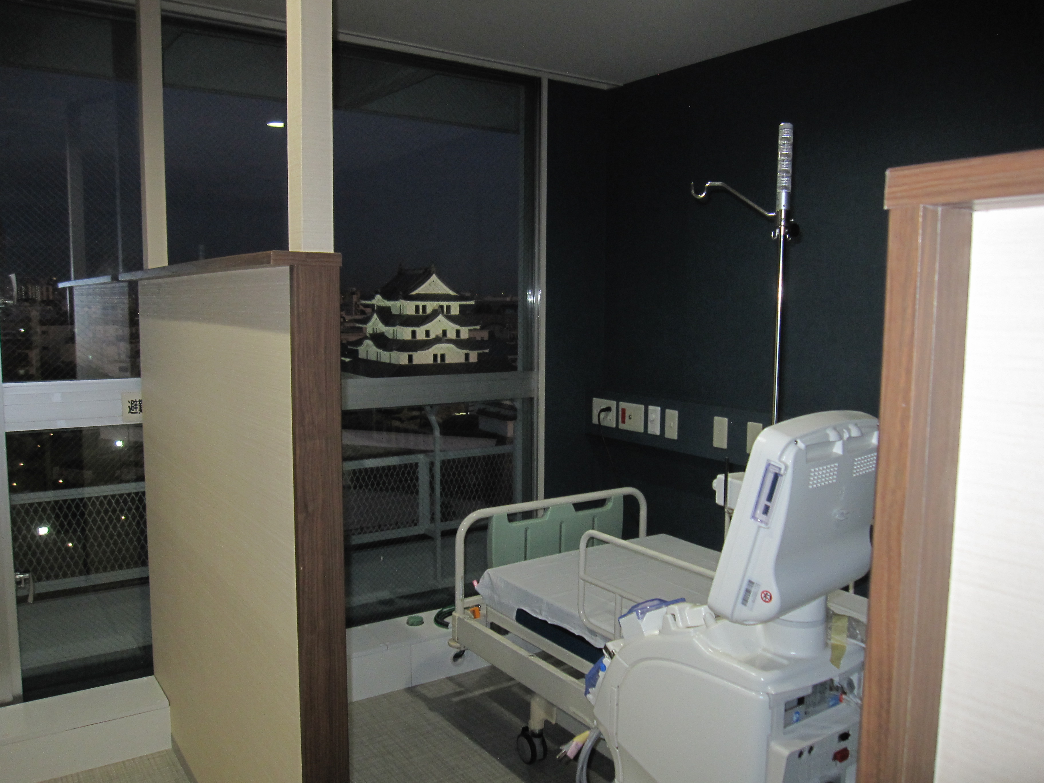 これまで、オーバーナイト透析は月・水・金曜の夜間から翌朝にかけて行ってきました。患者様の増加や、火・木・土曜コースを開設して欲しいとのご要望にお応えして、この度、2月から火・木・土曜コースをスタートしました。この治療法を、より多くの皆さんにご提供したいと存じます。オーバーナイト透析の透析ベット数は30床あり、そのうち、完全個室を2部屋用意しています。間仕切りでゆとりをもって区切られた半個室タイプが主体です。女性専用ブースもあるので安心です。大阪・神戸・西宮からも交通至便で、当院のオーバーナイト透析に関心をお持ちの患者様はお問い合わせ下さい。この写真は半個室タイプの部屋で、引き戸を閉めればプライバシーが保たれます。向かいは尼崎城。