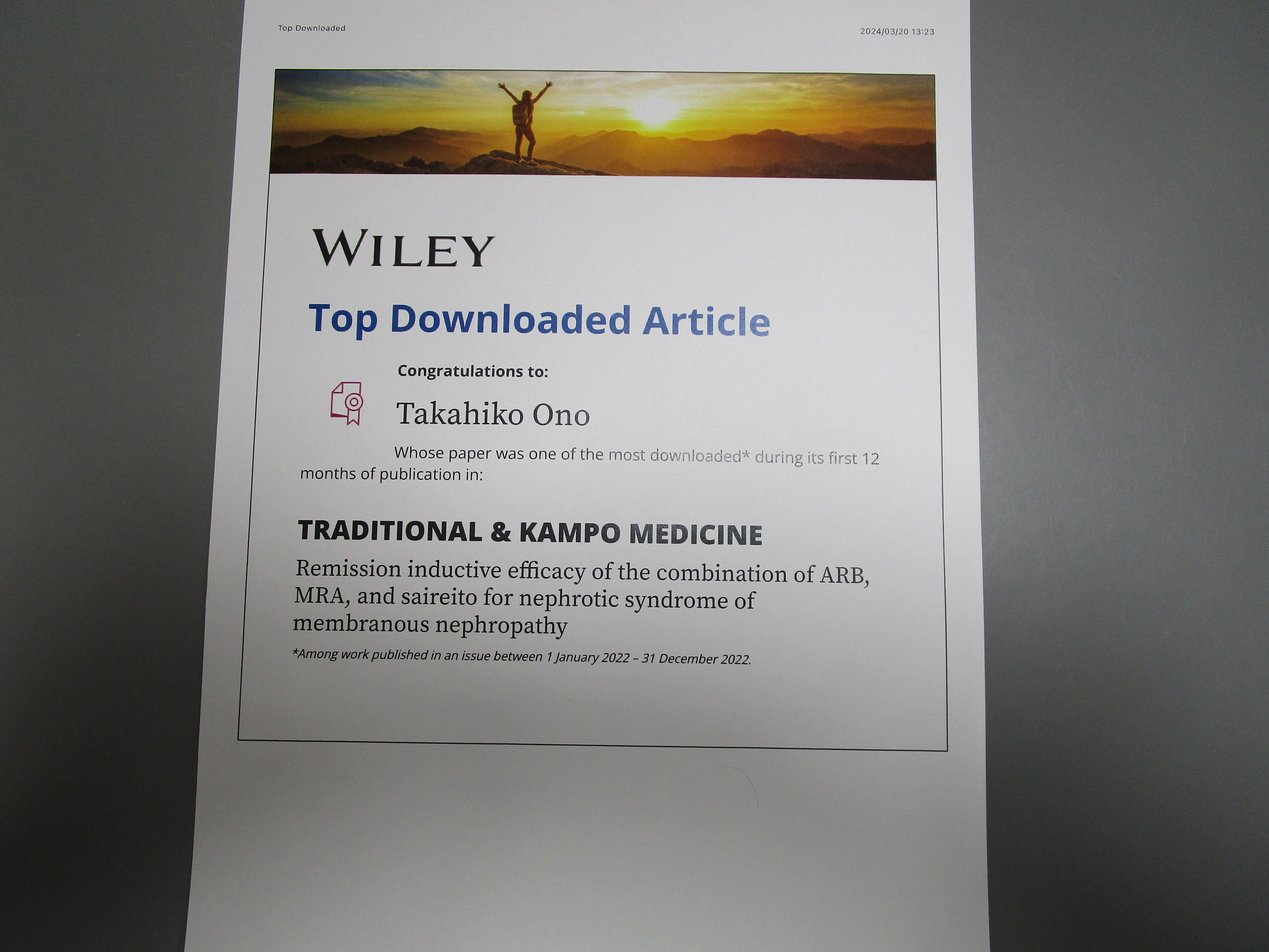 臨床医を幅広く対象にした歴史のある医学雑誌の『日本医事新報』誌、No.5154(2023年2月4日)、にて小野孝彦院長のコメント記事が収載されました。【近年,漢方生薬「黄耆」にクレアチニン値の低下,eGFRの改善効果があることが知られていますが,このことについて,漢方の専門家でかつ腎臓専門医の小野先生から,一般の漢方内科医へのアドバイス,注意点などをご教示下さい。】とのご質問に、【血清クレアチニン値とともに、血圧・尿蛋白(尿クレアチニン比)・併用薬の評価が必須】として、ご回答を執筆しました。